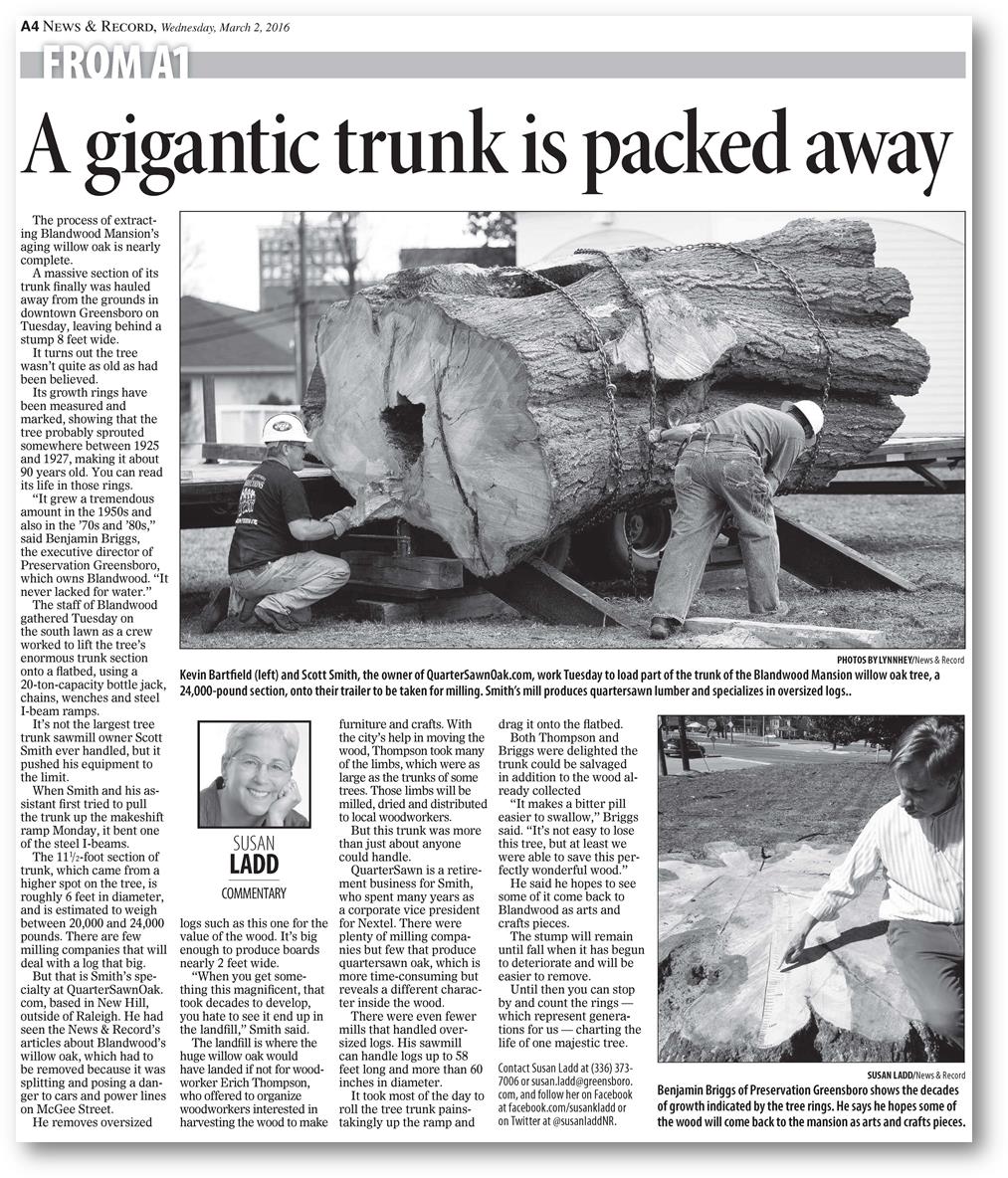 It took two excavators, one on each end, to lift what was left of the grand willow oak